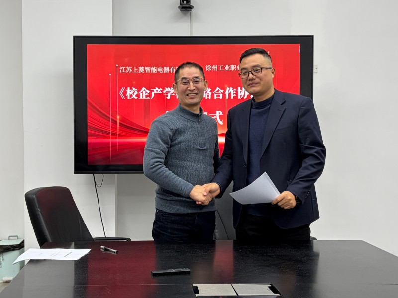 2025 年 12 月 15 日,徐州工业职业技术学院新沂学院与江苏上菱智能电器有限公司产学研战略合作签约仪式在上菱电器新沂厂区举行。新沂学院宋帅帅院长一行三人与上菱集团人力资源总监陈国贤等企业代表齐聚一堂,以协议签署为纽带,实现高校资源与企业需求的精准对接。